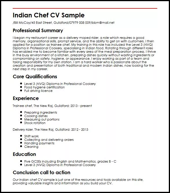 Indian Chef Cv Sample Myperfectcv