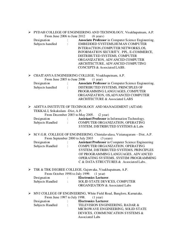 Resume Format For Fresher Lecturer In Engineering College Doc