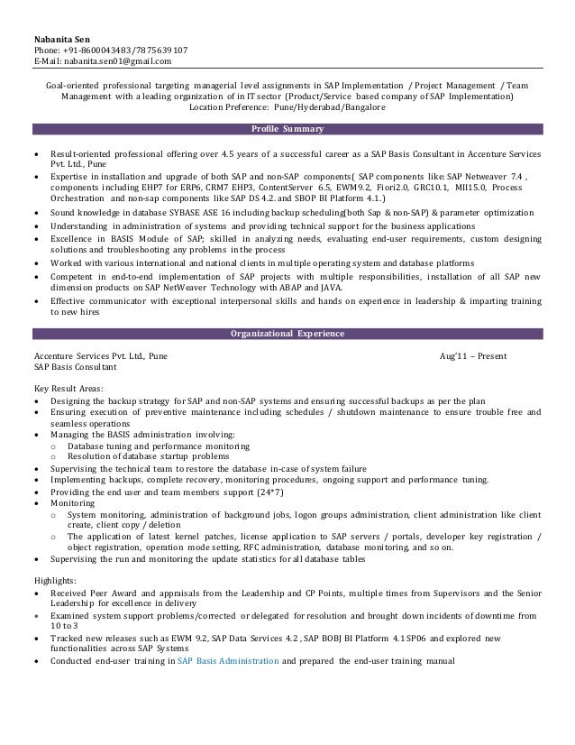 Sap Basis Resume Format Sap Basis Fresher Resume Doc Resume